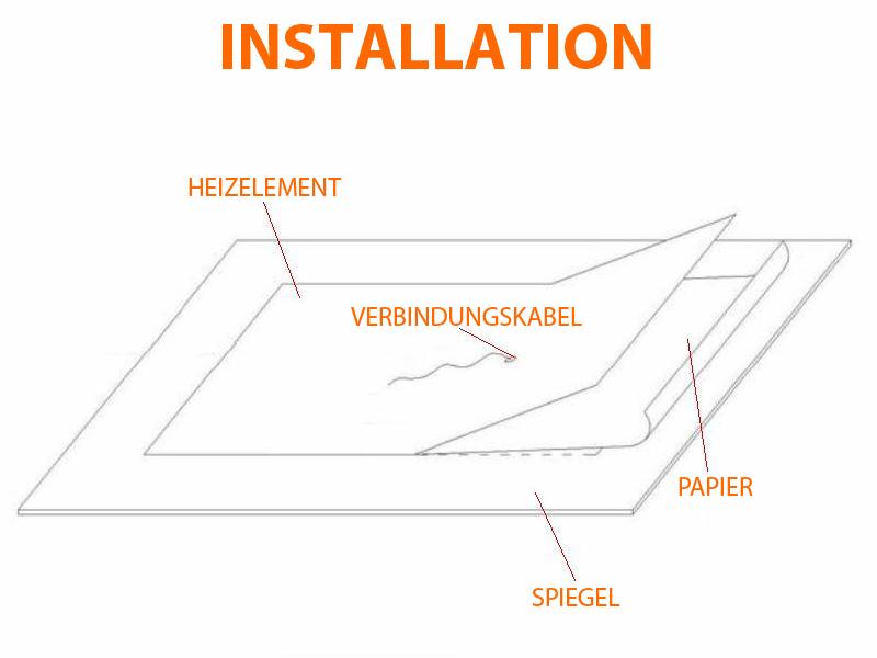 Wichtig: Bitte stellen Sie vor der Bestellung sicher, dass hinter Ihrem Spiegel ausreichend Platz für das Heizelement vorhanden ist – insbesondere zwischen eventuellen Halterungen oder Befestigungsklemmen.